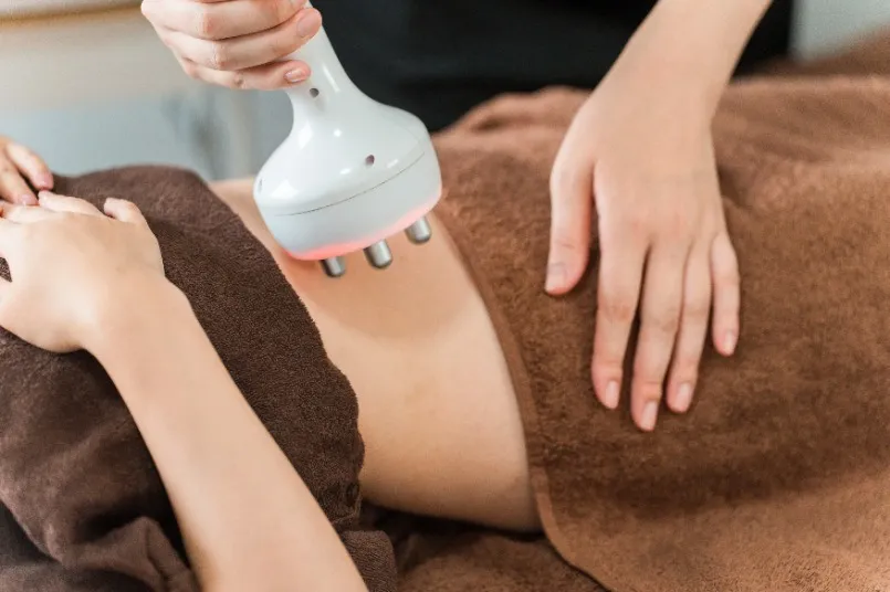 たるみが気になる部位をハンドで丁寧に押し上げ、